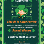 Les danseurs de Clover Jumpers (Danse Irlandaise), le groupe Azylis (Groupe de musique traditionnelle irlandaise) et Menphis Reward (Musique Irlandaise, Folk et un brin Country Music) animeront une belle soirée Irlandaise.