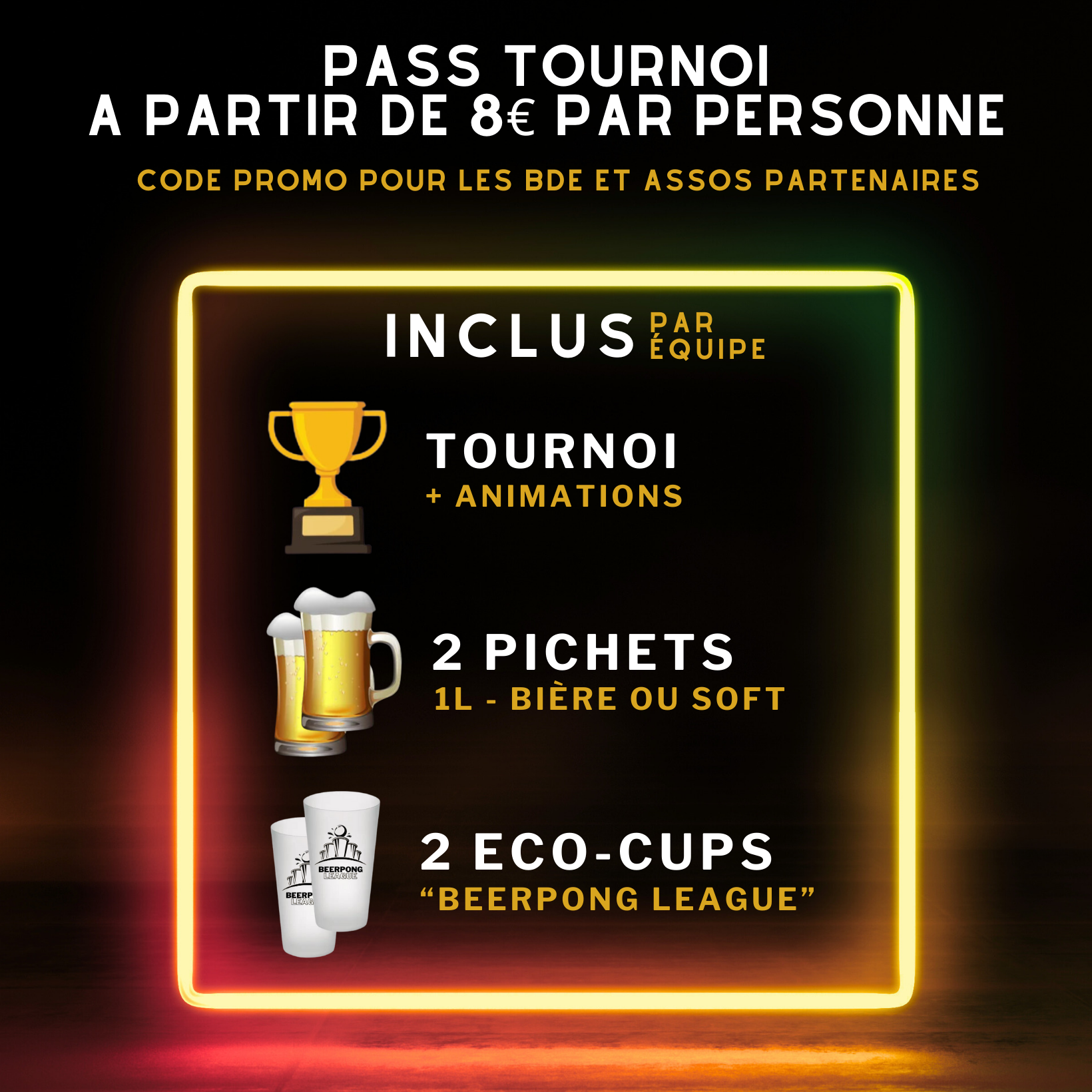 đ Plus de 300 ⏠de lots et goodies garantis dont une table officielle de beerpong (valeur : 100 âŹ).