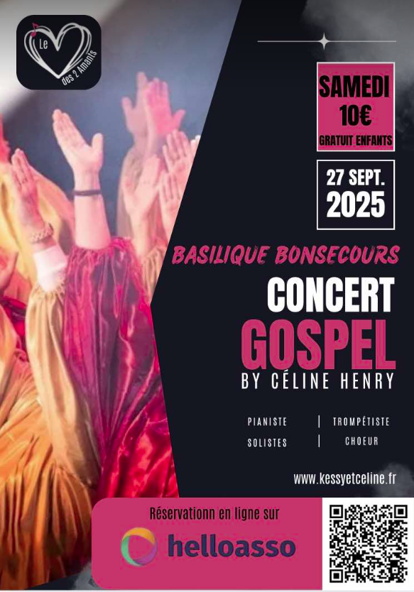 Venez vivre une expérience inoubliable avec Le Chœur des 2 Amants ! Le 27 septembre 2025 à 20h, rejoignez nous à l'église de Notre Dame de Bonsecours pour un concert gospel exceptionnel. Plongez dans l'énergie de notre cheffe de chœur et la passion de notre chorale, une véritable famille unie par l'amour du gospel. Venez partager avec nous des moments de joie, d'émotion et de communion. On a hâte de vous accueillir pour partager ensemble notre passion et créer des souvenirs mémorables.