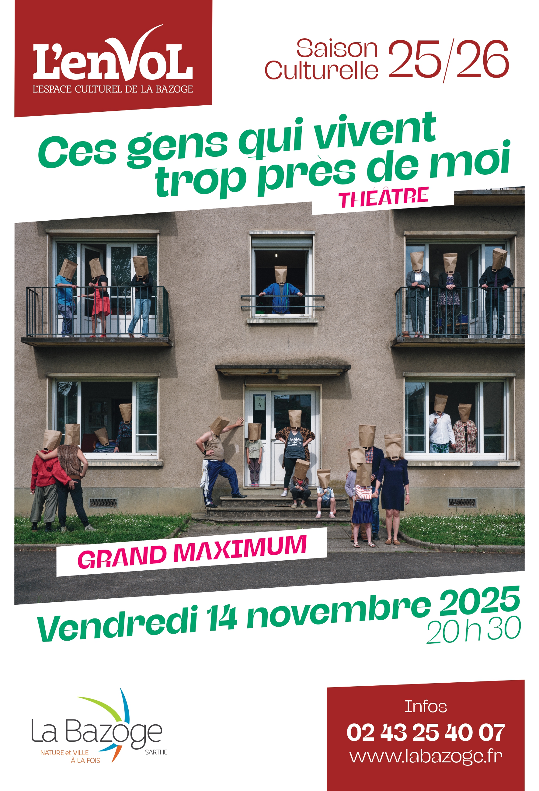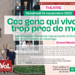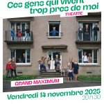 Nous sommes tous des voisins. Non ? La nouvelle création de Sébastian Lazennec avec les 17 comédiennes et comédiens non professionnels de Grand Maximum questionne donc les liens que nous entretenons, ou pas, avec les personnes qui vivent près de nous. Avec humour, démesure et cruauté, nous vous invitons à regarder de plus près chez nos voisins et surtout à rire de nos comportements et de nos débordements.