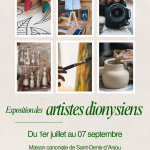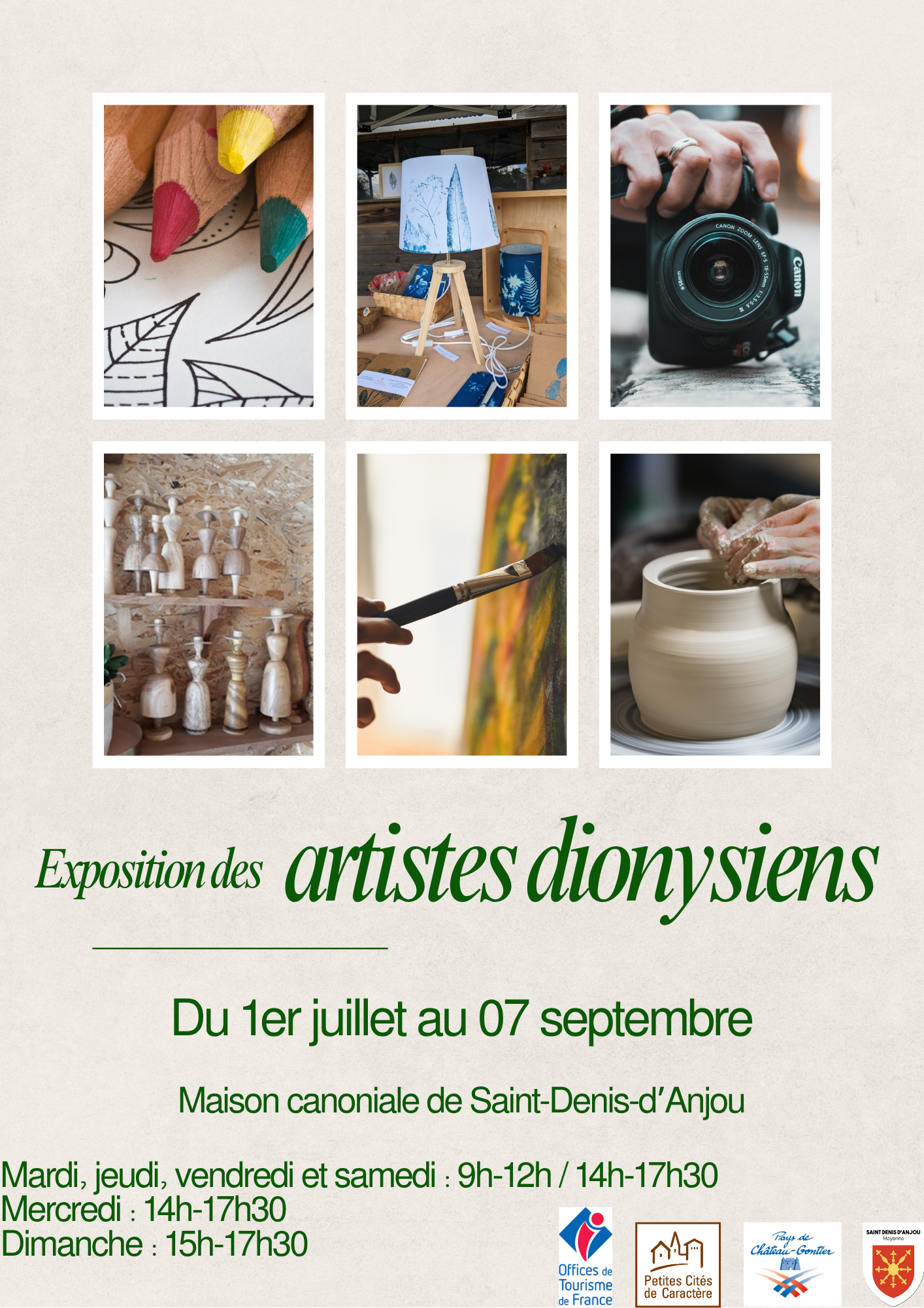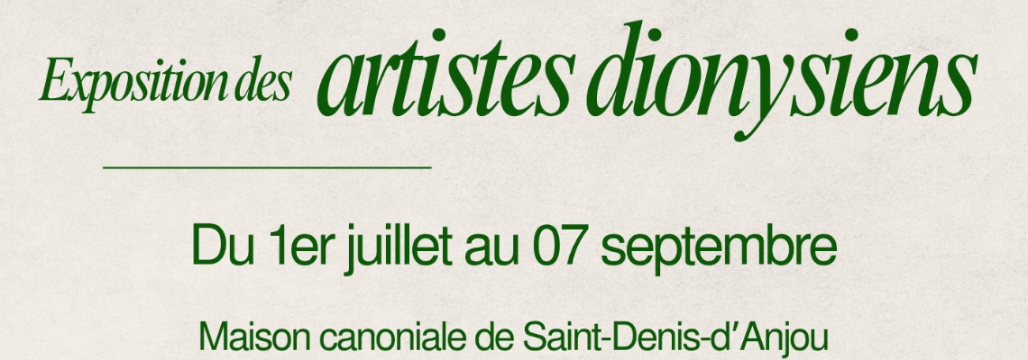 De AnaĂ«lle G.Nous sommes ravis de vous accueillir pour lâexposition des artistes dionysiens qui se tiendra Ă la Maison Canoniale de Saint-Denis-dâAnjou du 01 juillet au 07 septembre. Venez admirer leurs travaux de toutes sortes : peintures, dessins, sculptures, photographiesâŠ