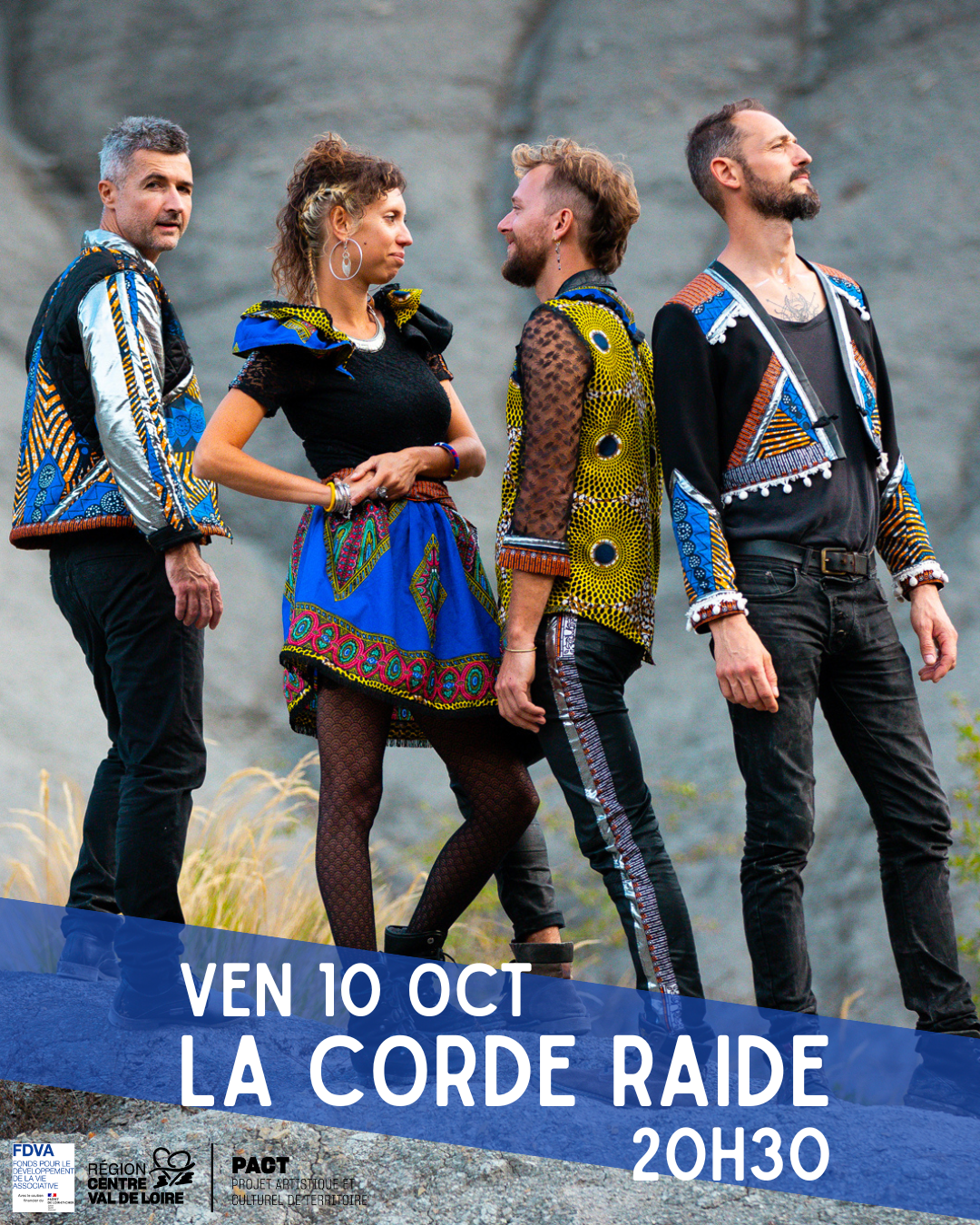 À l'origine, il y a une rencontre malicieuse entre Lille et l'Île de la Réunion. De ce duo fougueux, formé par Jules Depinois (chanteur-guitariste lillois) et Olivine Véla (chanteuse-accordéoniste réunionnaise), naît La Corde Raide, une musique voyageuse et métisse, solaire et rassembleuse.
