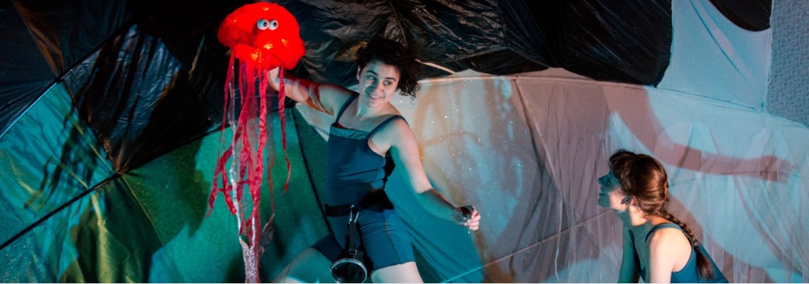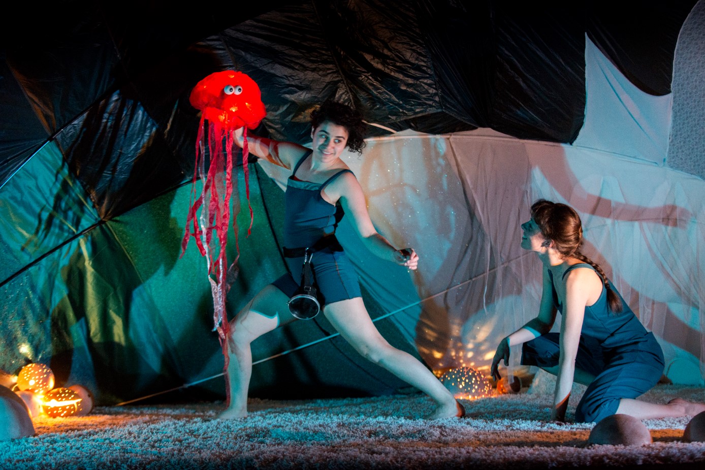 Au Fond des Mers établit un parallèle entre le monde aquatique et le monde intra-utérin, en théâtre d’ombres, jeux de lumières, marionnettes, mouvements et chorésigne.