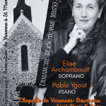 Elise Archambault (soprano) et Pablo Ygout (piano) vous accompagneront lors de cette soirée.