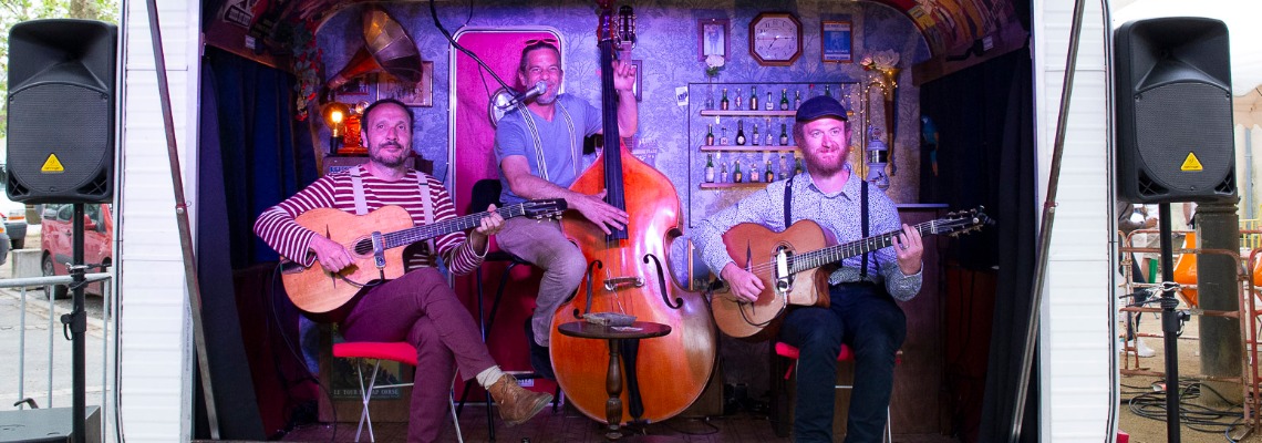 Madame Swing, c'est 3 musiciens sur la route avec leur guinguette roulante en guise de scène : une caravane musicale qui s'ouvre comme une ancienne boîte à musique, juste le temps d'un magnifique spectacle invitant tous les danseurs à se déchaîner !