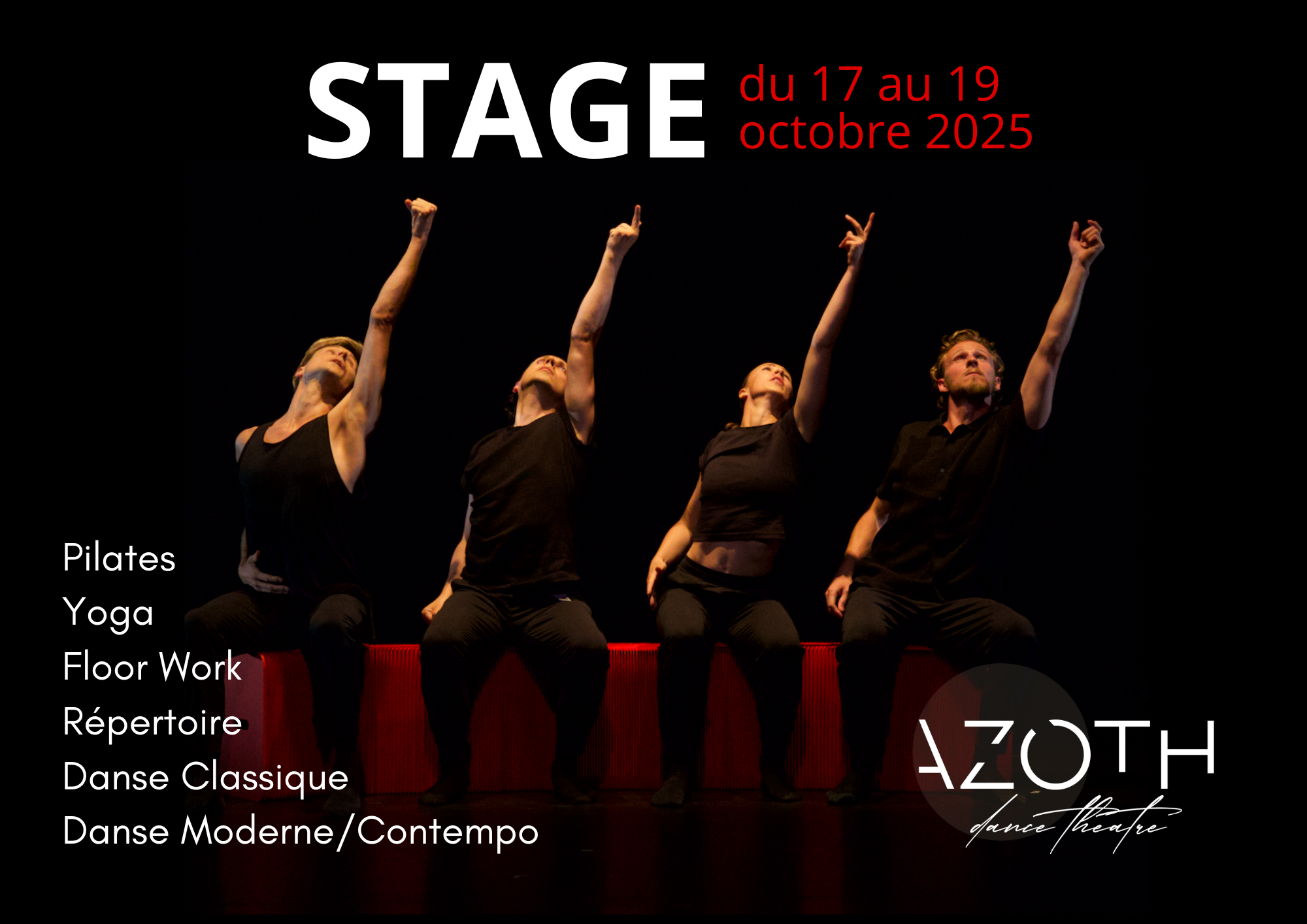 Vendredi 17, samedi 18 et dimanche 19 octobre, la compagnie Azoth Dance Théâtre propose un nouveau stage dans le Loir-et-Cher, animé par 4 danseurs de la compagnie, reconnus en France et à l'international pour leur carrière, leur formation et leur pédagogie.