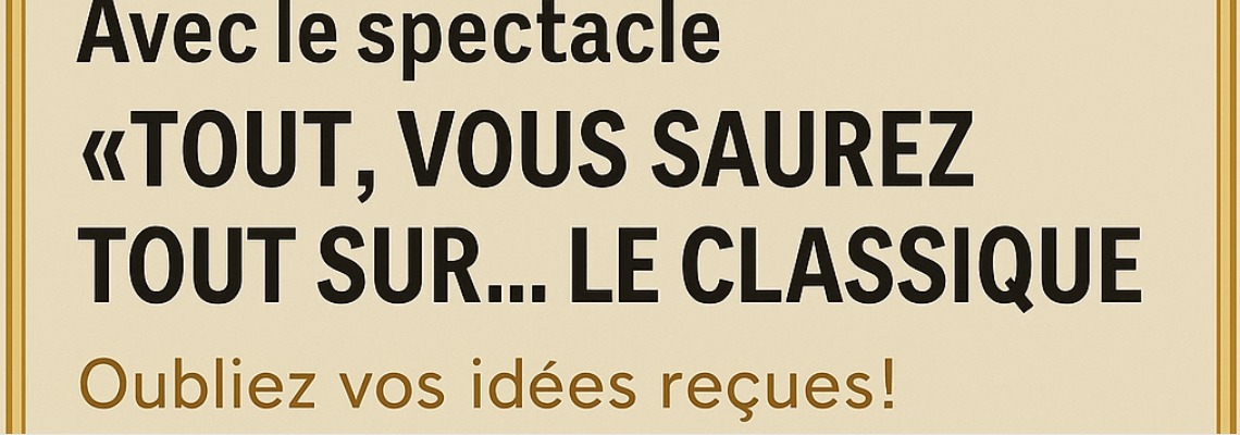 Avec le spectacle « Tout, vous saurez tout sur ….le classique!», oubliez vos idées reçues!