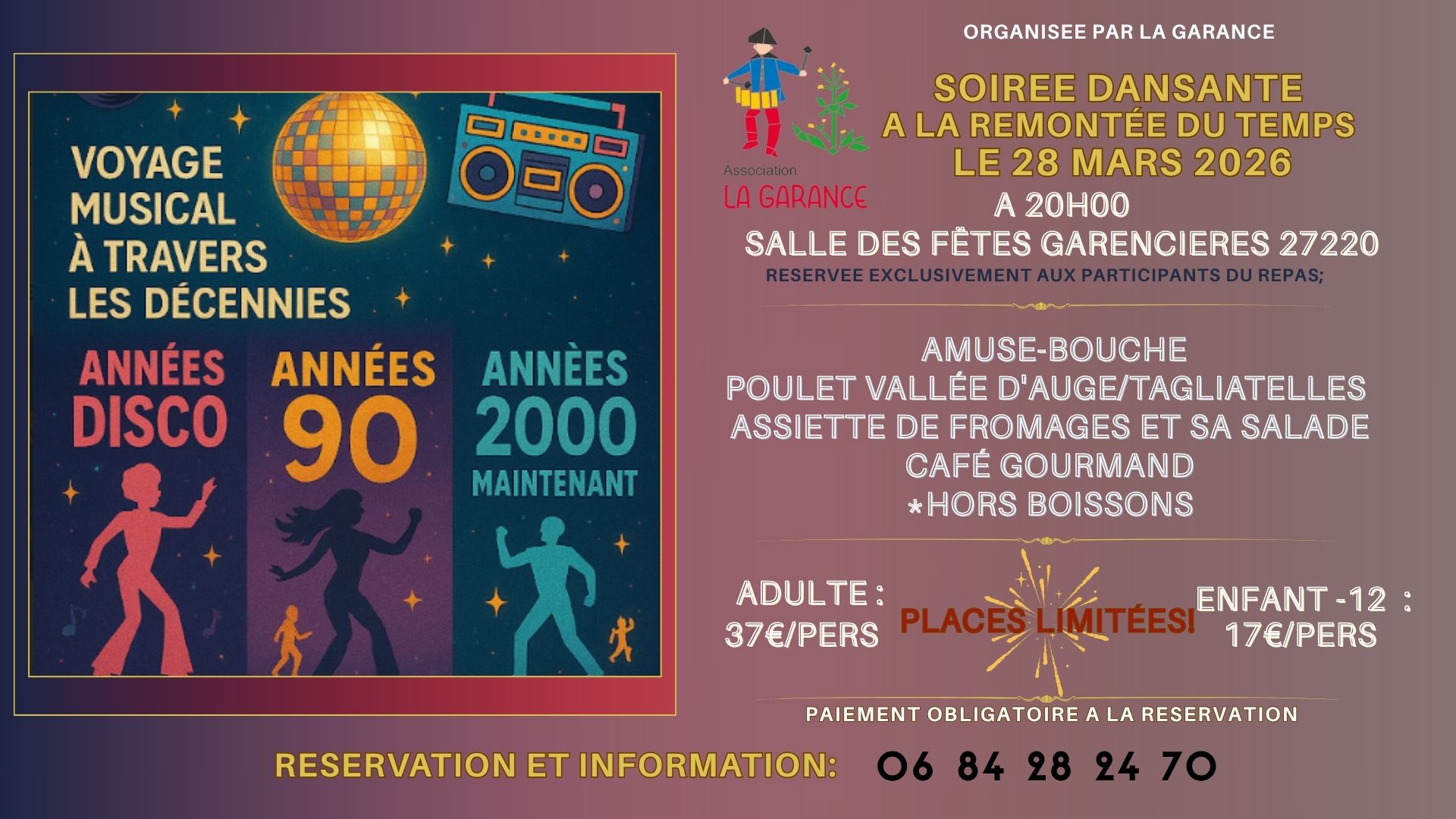 De Fanny R.Le 28 mars 2025 à 20h, la Salle des Fêtes de Garencières (27220) se transforme en machine à remonter le temps… et en piste de danse géante !