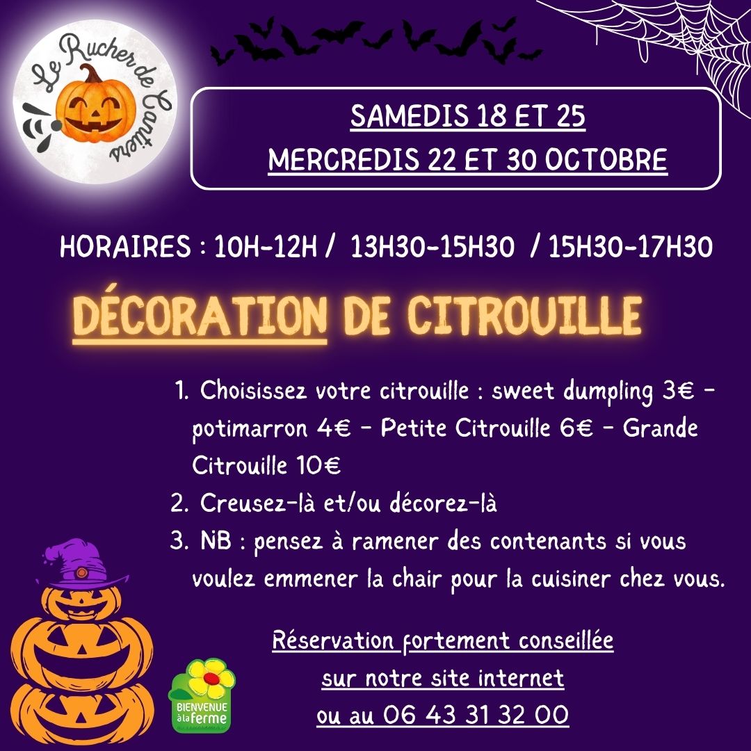 Pensez à réserver votre jour et créneau, et les citrouilles que vous souhaitez décorer car certaines tailles sont en quantité limitée !