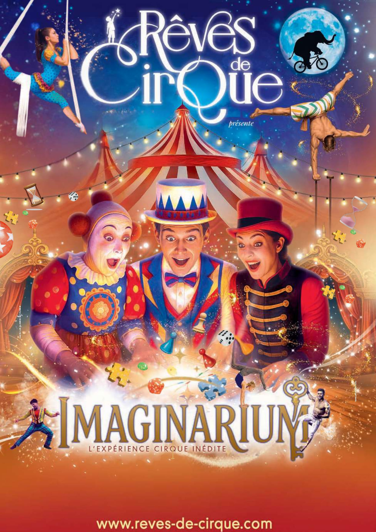Rêves de Cirque ce sont des clowns, jongleurs, acrobates, voltigeurs rivalisent d’audace et de talents pour vous entraîner dans le monde féerique de « MAGINARIUM ».