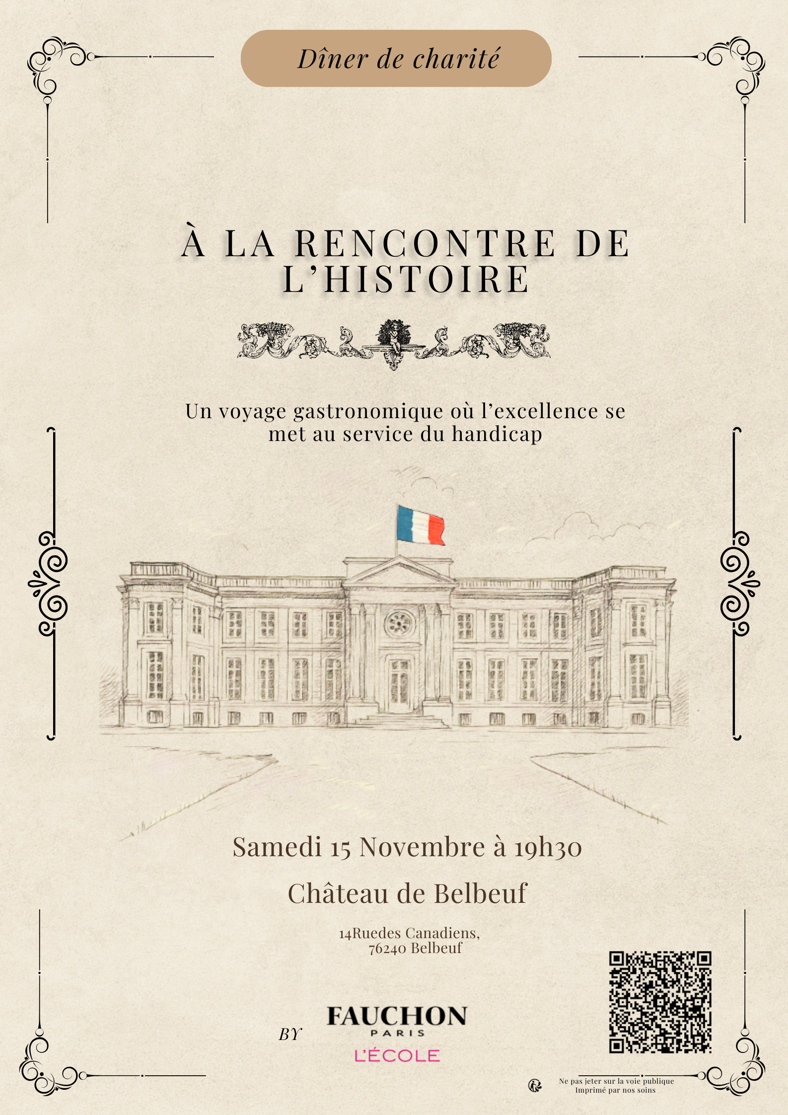Une soirée où la gastronomie rencontre la solidarité : dans le cadre prestigieux du Château de Belbeuf, au cœur des boucles de la Seine, les étudiants de l’École FAUCHON de Rouen vous invitent à partager un dîner d’exception au profit de l’association Tombée du Nid.