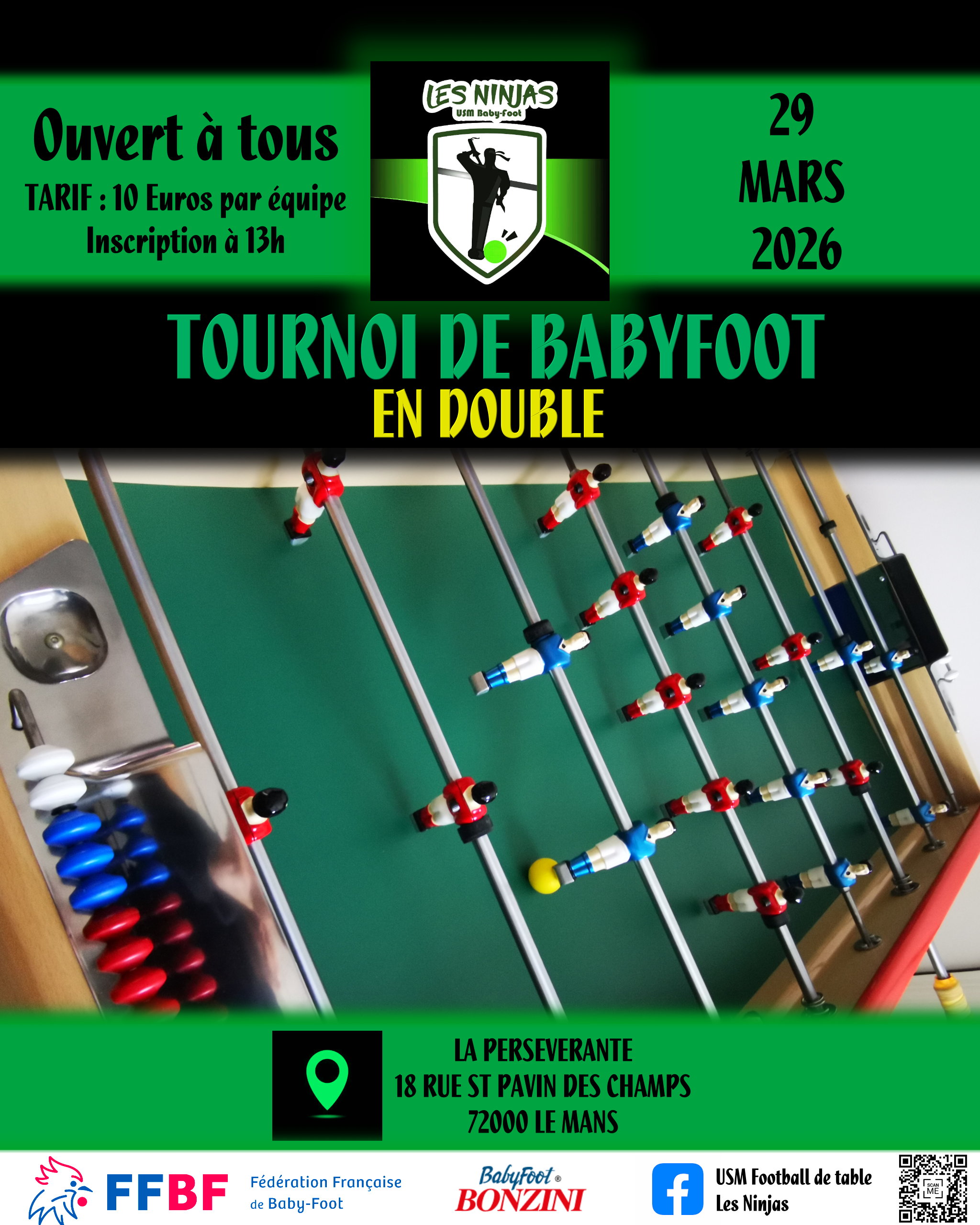 Prochain tournoi AMATEUR de babyfoot à l’USM Les Ninjas !