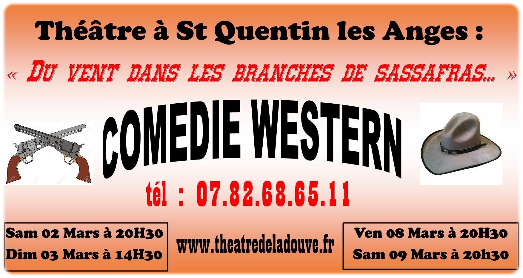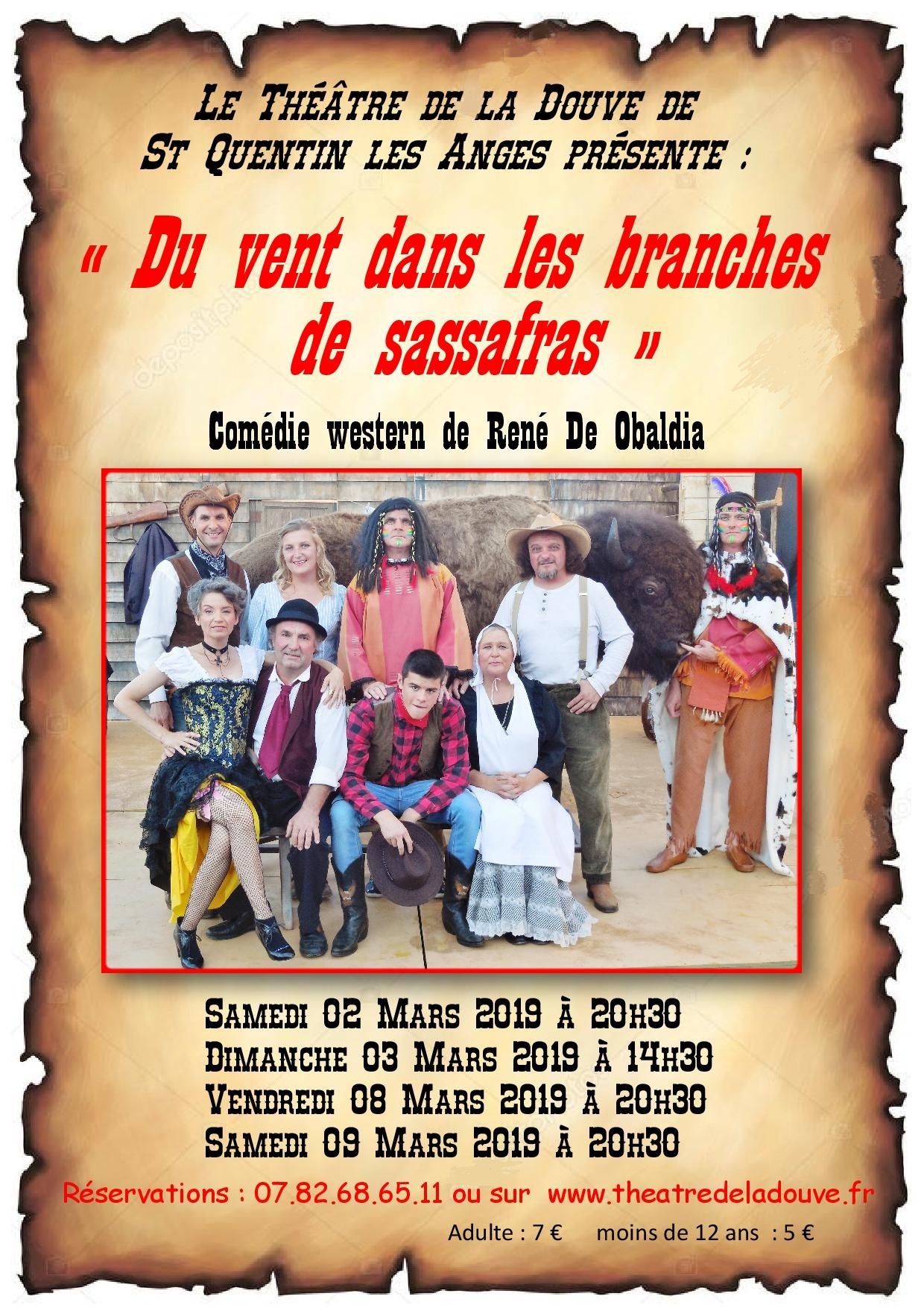 Théâtre à St Quentin les Anges : "Du vent dans les branches de sassafras". Une comédie et parodie western de René de Obaldia.