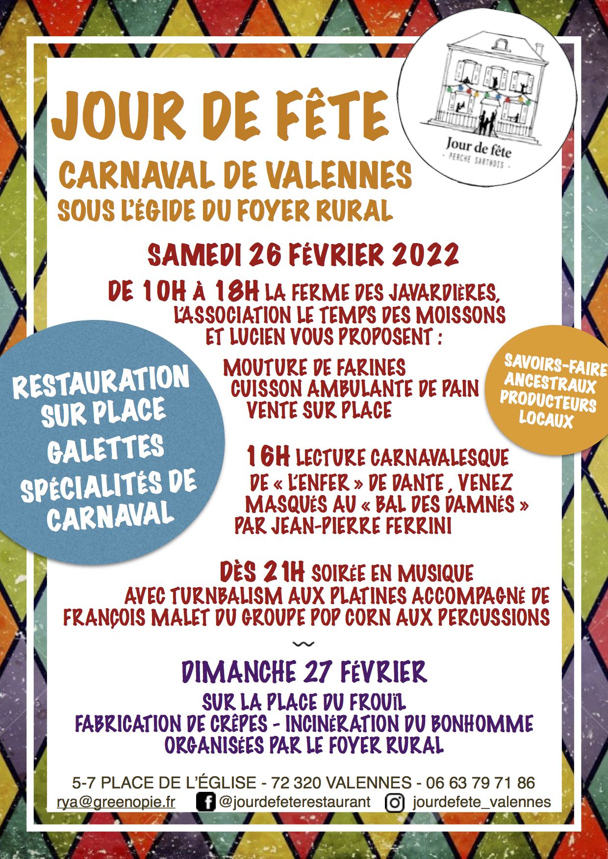 En parallèle du traditionnel carnaval de Valennes organisé par le foyer rural, "Jour de Fête" organise une journée festive samedi 26 février.
